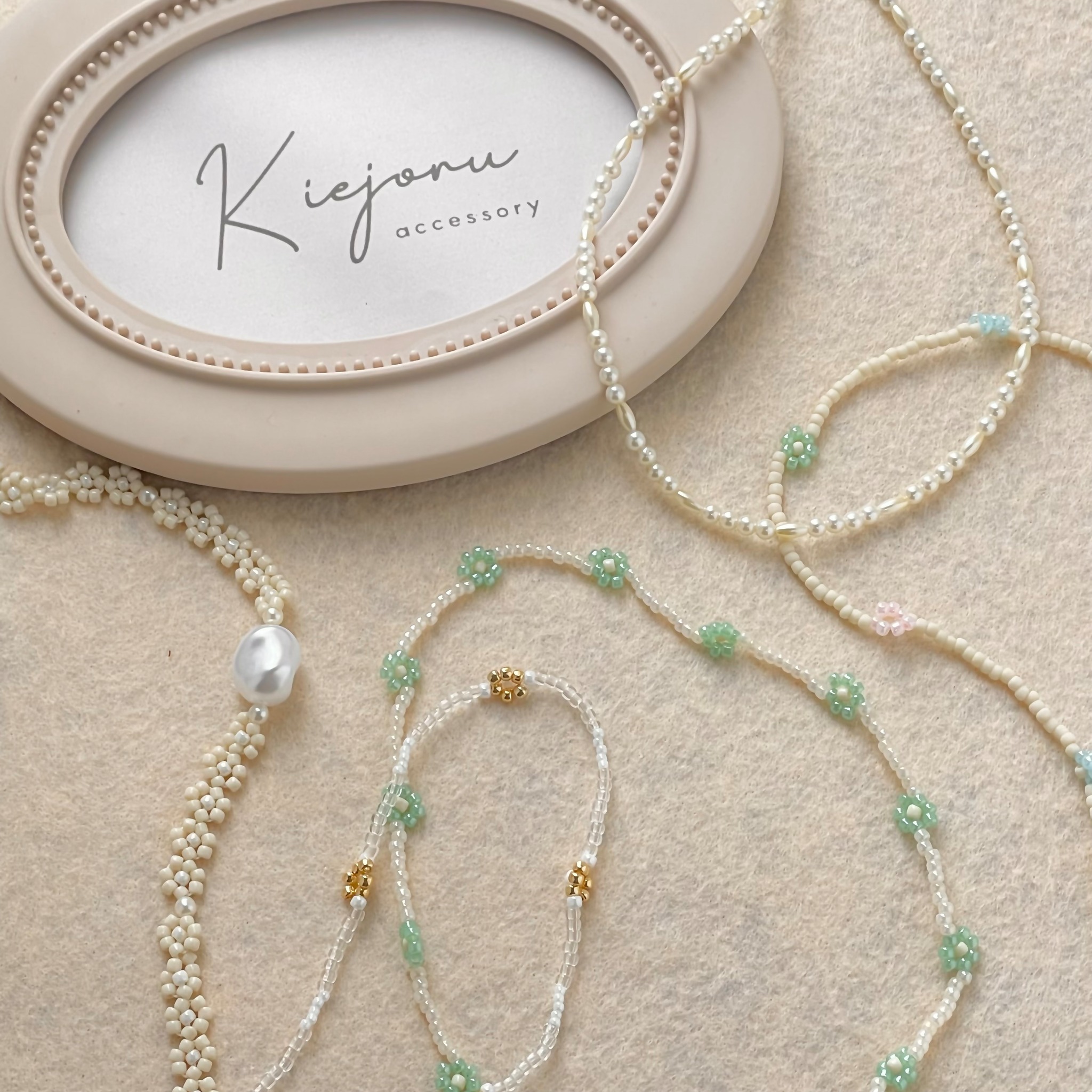 ビーズネックレス同士を組み合わせたりしても ◎!